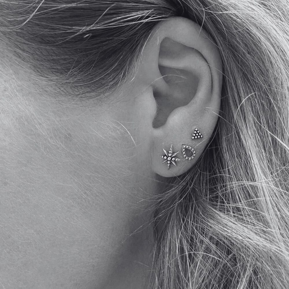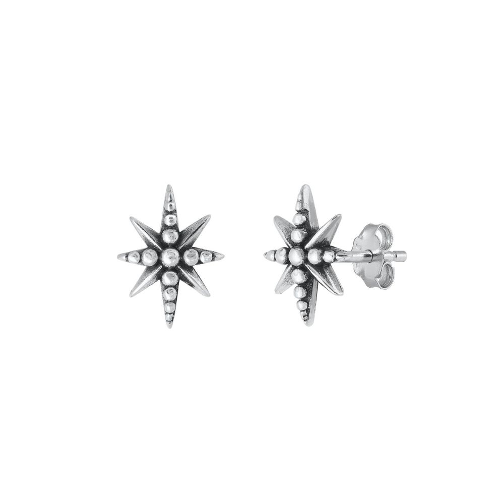 Zilveren oorknopjes in de vorm van een ster. De kleine bolletjes geven een stoer boho effect. Leuk voor in het eerste gaatje. Gemaakt van echt zilver.