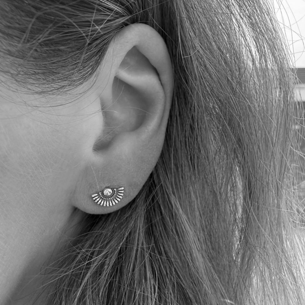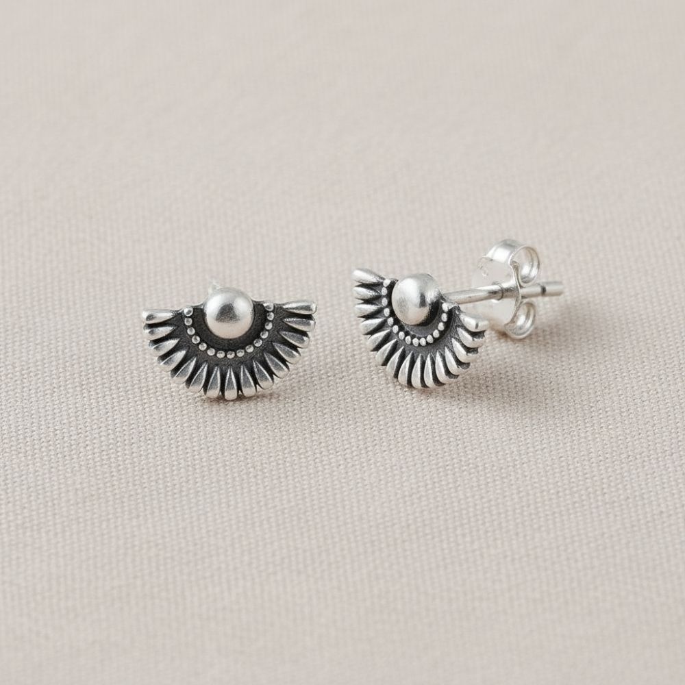 Onze Zilla oorbellen zijn opvallende oorknopjes met een waaierachtig zonnestraalpatroon. Gemaakt van echt zilver en perfect voor in het eerste gaatje. Een stoere, boho look met een speels detail – voor wie nét even iets anders zoekt.