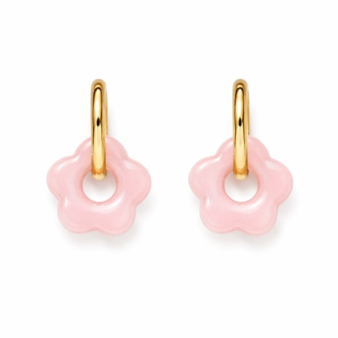 Vrolijk, kleurrijk en precies het soort sieraad waar je blij van wordt. Deze roze bloemetjes hangen aan een goudkleurige hoopring van 20mm. Samen zijn ze een combinatie die meteen opvalt.