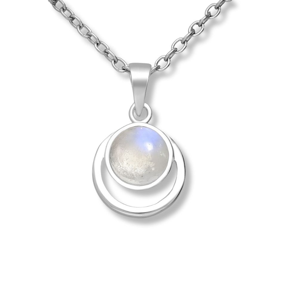 Deze 925 zilveren ketting met regenboogmaansteen heeft een elegante, frisse uitstraling. De ronde steen is gezet in een strak cirkelontwerp, waardoor de lichte glans van de maansteen mooi zichtbaar blijft. Een stijlvol en tijdloos sieraad dat bij elke outfit past — van alledaags tot chic.