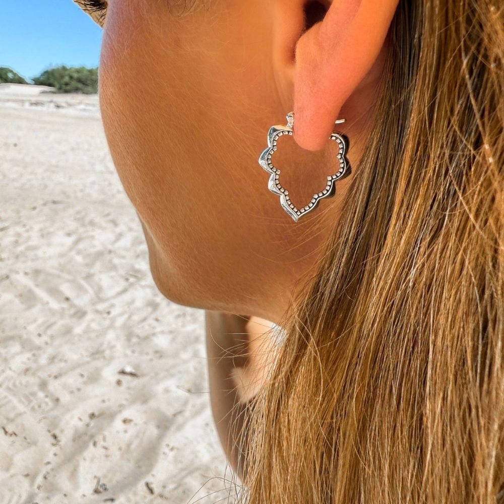 Deze prachtige oorringen combineren een bloemig uiterlijk met een stoere twist. Dankzij hun unieke vorm zijn ze anders dan anders en perfect om op te vallen en te shinen. Gemaakt van echt zilver, waardoor ze niet alleen mooi maar ook van hoge kwaliteit zijn. Voeg een bijzondere touch toe aan je look met deze eyecatchers!